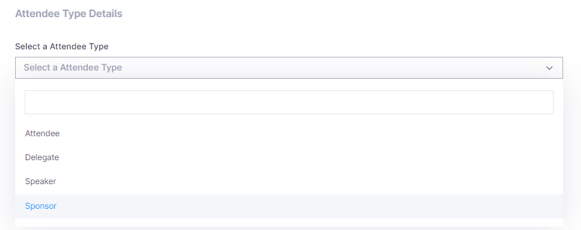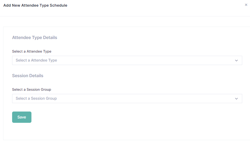 2. In the window that pops-up, first select the attendee type whose schedule you will be configuring. Start typing the attendee type name in the “Select an Attendee Type” field.