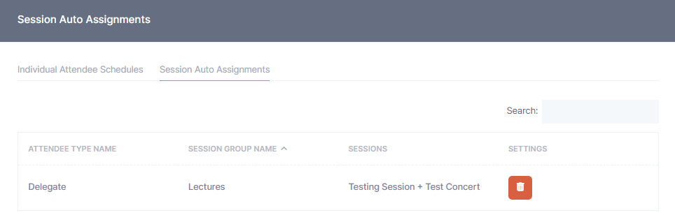 The new attendee type schedule will now be available under the “Session Auto Assignment” table at the bottom of the page.