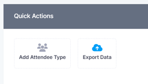 To export a list of all your attendee types, click on the “Export Data” tab under the "Quick Actions" menu, which will automatically download a spreadsheet containing the groups.