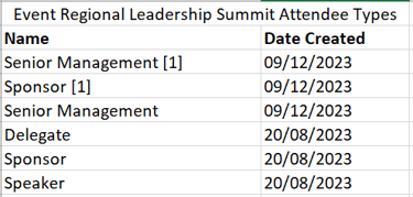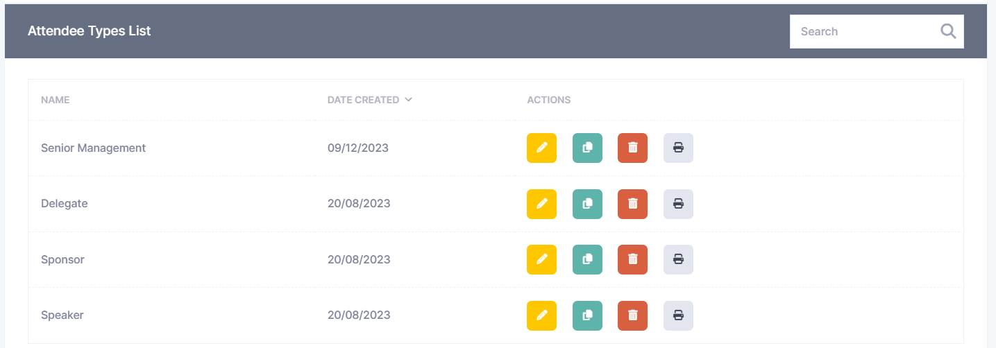 The new attendee type will now be available in the Attendee Types List table on the page.
