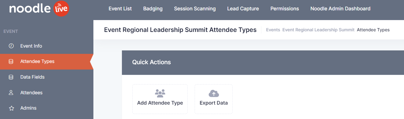 After you create a new event in the Noodle Live Portal, one of the first steps you need take as part of the event configuration is set up your attendee types - custom categories of event attendees.