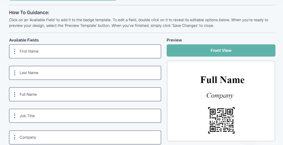 Selecting the QR option means that you would like your badge design to feature a QR code that can be scanned throughout the event.