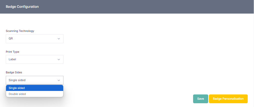 Single Sided means that personalised attendee information will be present on only one of their badge's sides.