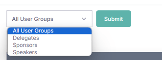 Click on the “Attendee Type” dropdown menu, select the attendee type you would like to see the data for and click on “Submit”. The data will be filtered and the updated analytics numbers will be displayed.