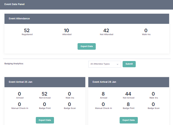 You can also further filter the Event Arrival data based on the Attendee Types you have previously created and assigned to attendees.