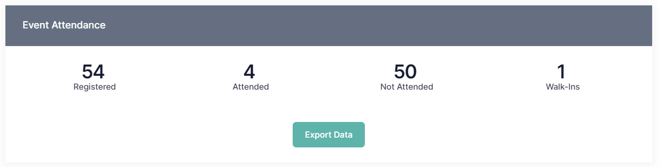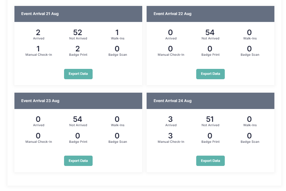 Under the Data & Reporting section of the platform, you can find aggregated data for the event attendance and arrival.