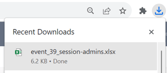 2. An excel file containing a list of all session admins uploaded under the event will be downloaded to your computer.