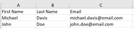 3. The file contains the list of all available on the event session admins with their details - First Name, Last Name and Email Address.