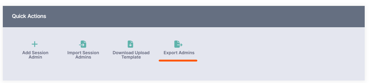 Once you have created your session admins list - either individually or in bulk, you can further edit, delete or export them.