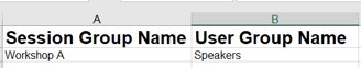 3. Populate the attendee types in the “Attendee Type” column and the associated session group name in the “Session Group Name” column.