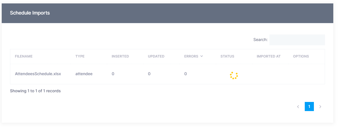 A success message will be displayed at the top of the page and the attendee schedule file will be added to the processing queue under in the "Schedule Imports" table.