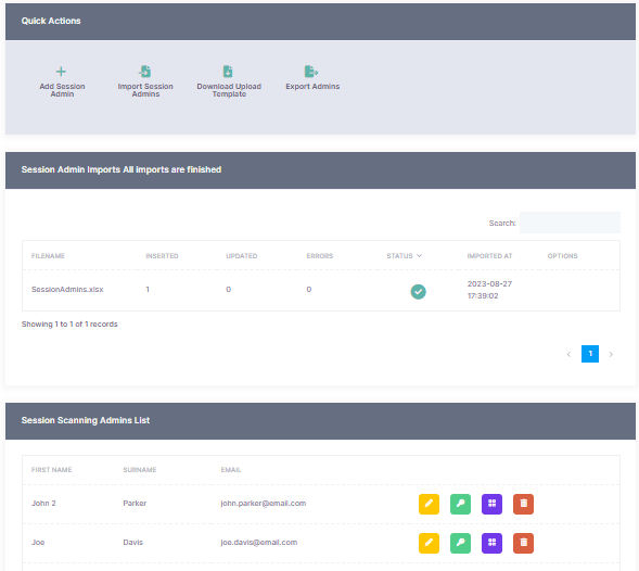 Once you have uploaded your session list and configured your session scanning templates, it is time to upload your designated Scanning Admins list.