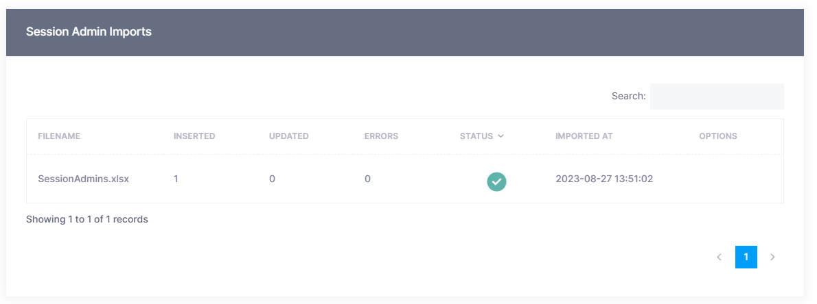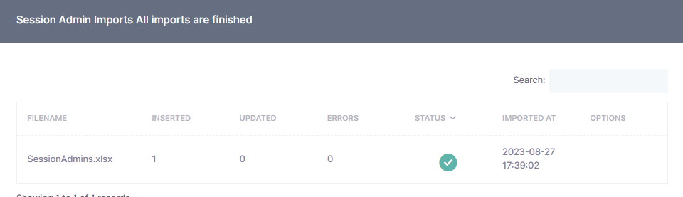 The processed file will be added to the “Session Admins Imports” section on the page.