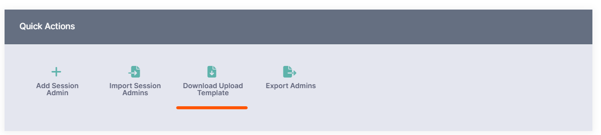 Prior to uploading your session admin list in bulk, as a first step, please download the upload template from the system.