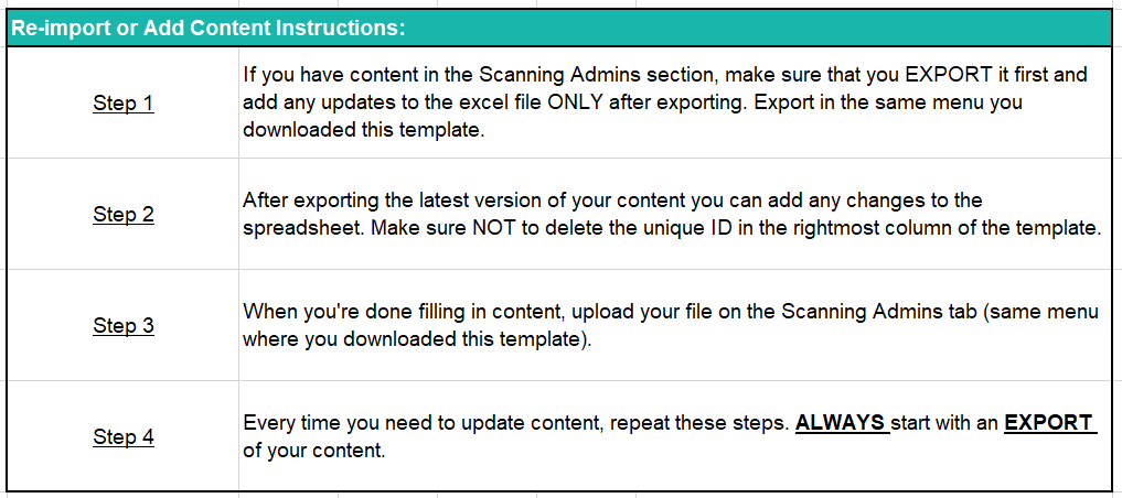 There are two ways to create your scanning admins list - by manually creating individual admins or by using the bulk import option.