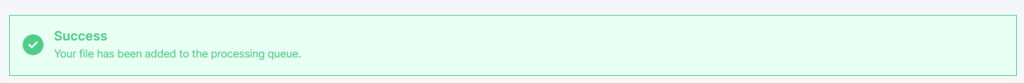 A success message will appear at the top of the page and the file will be displayed under the "Agenda Imports" table with the relevant processing status.