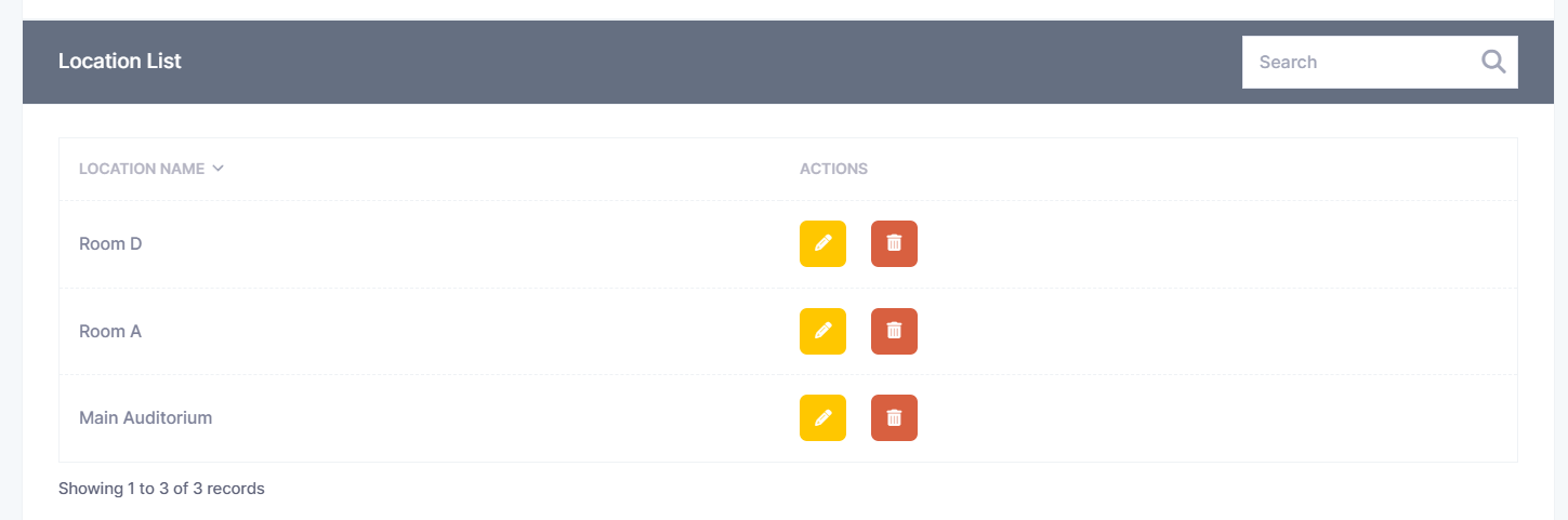 All newly created locations will be available under the 'Locations' tab above the uploads list (you can toggle between 'Agenda' and 'Locations' to view lists of both the sessions and locations you have created on the same page).