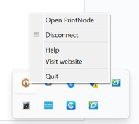 3. To open the PrintNode Client’s Settings, right-click on the application icon and select “Open PrintNode”.