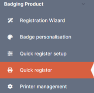 For the purpose, navigate to the Badging Product section on the side menu and select Quick Register from the available list of items.