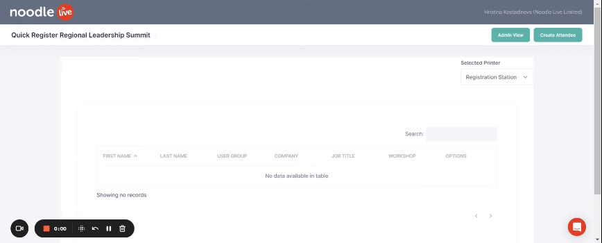 The Quick Register Web App is the dedicated part of the Noodle Live Portal which you will use onsite to print event attendees' badges and register new delegates.