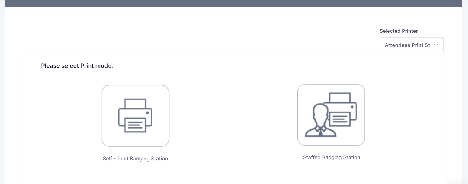 Self-Print Badging Station is any registration station where event attendees will be required to scan their event check-in QR Code (previously communicated over email) in order to get their badge printed and check into the event.