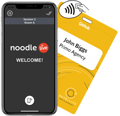 In this case, the attendees' badges will contain an embedded RFID chip. To scan the attendee, tap the badge on the back of the device, where the device's NFC is located.