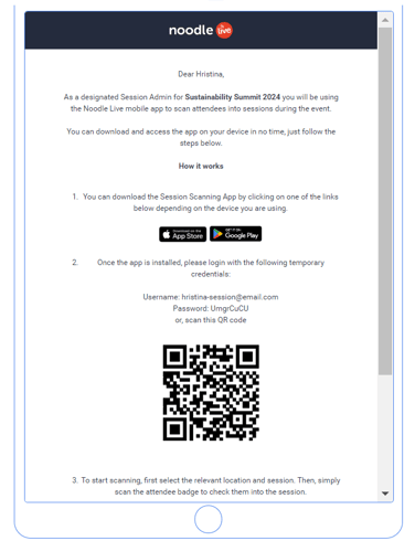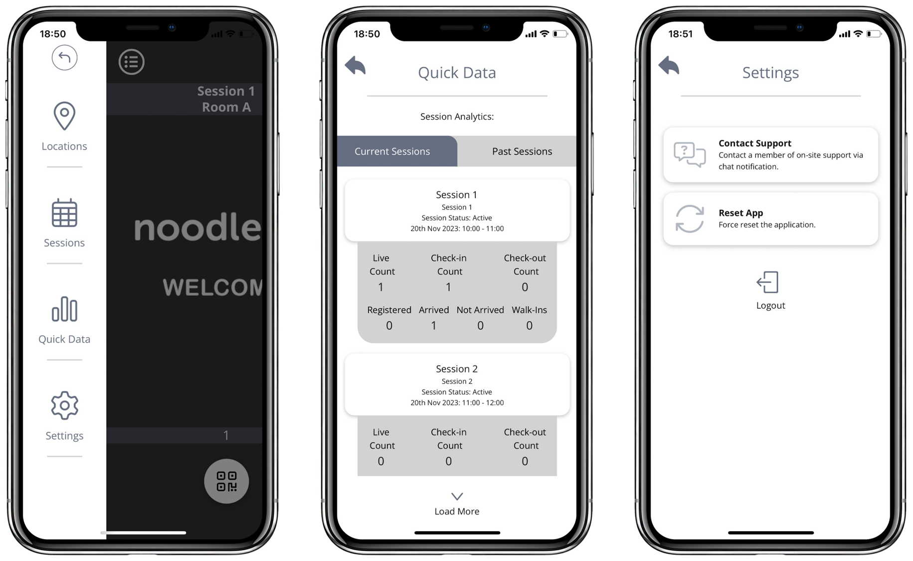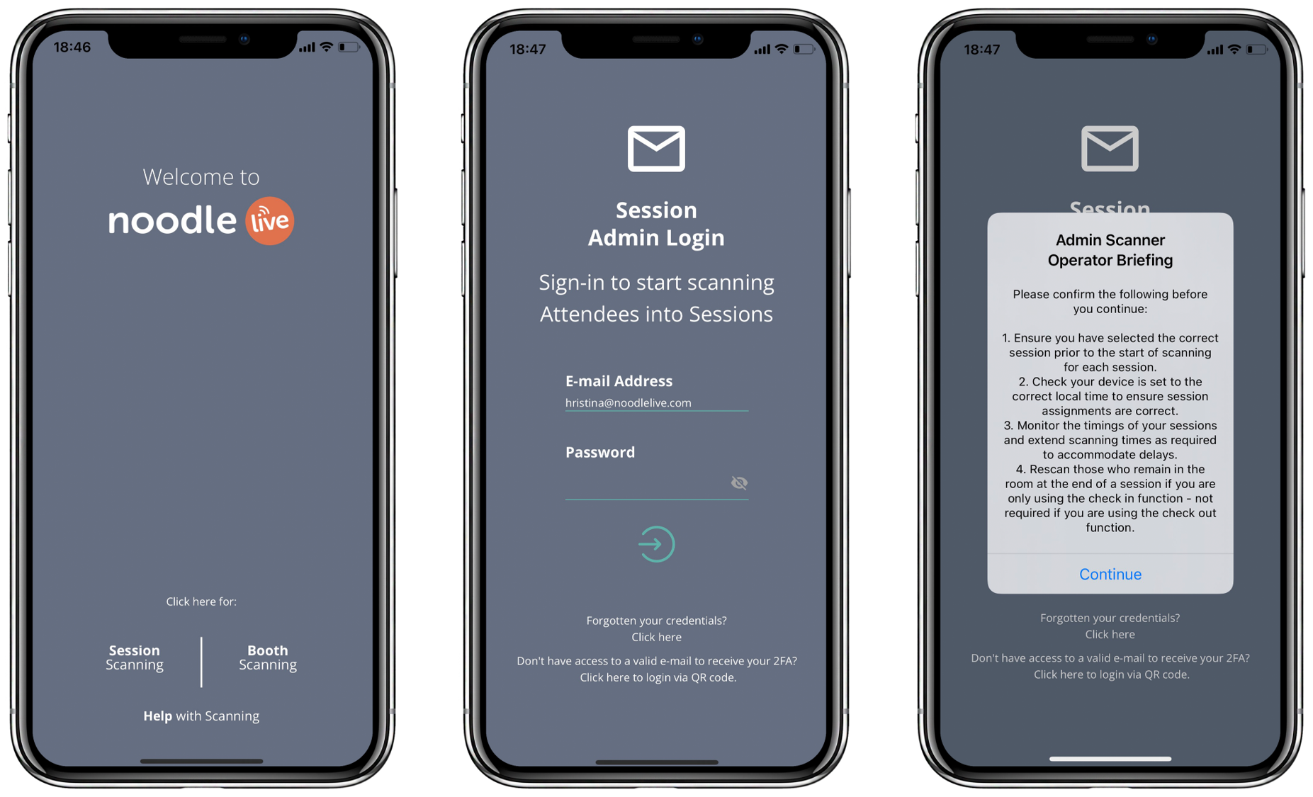 This page will walk you through the process of using the Noodle Live mobile app for session scanning at your event. Session scanning is a powerful tool to efficiently manage attendee check-ins and check-outs. Follow these steps to get started.