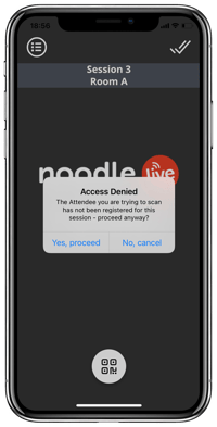However, if you try to check an attendee into a session they are not assigned to, the app will display a message informing you that access for this session is denied.