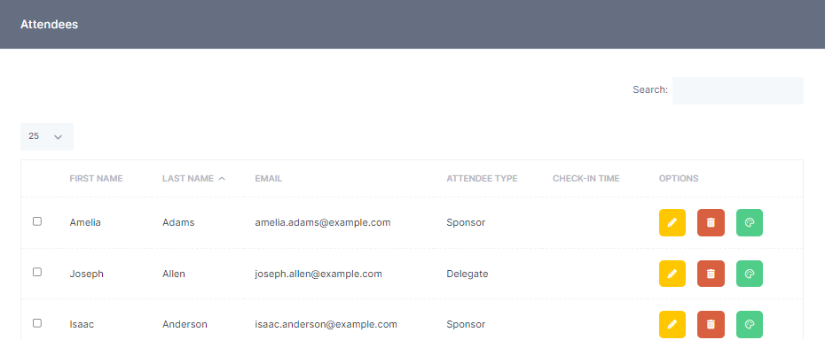 5. Using the Options menu, you can always modify an attendee’s details or delete a user from the list.