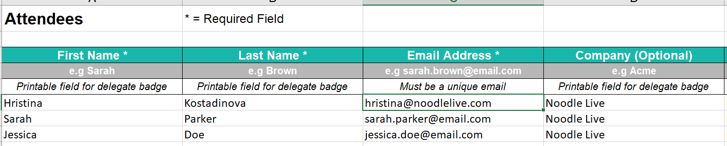 Please do not remove any tabs or modify the structure of the template. Simply populate the data of the attendees and save the file.